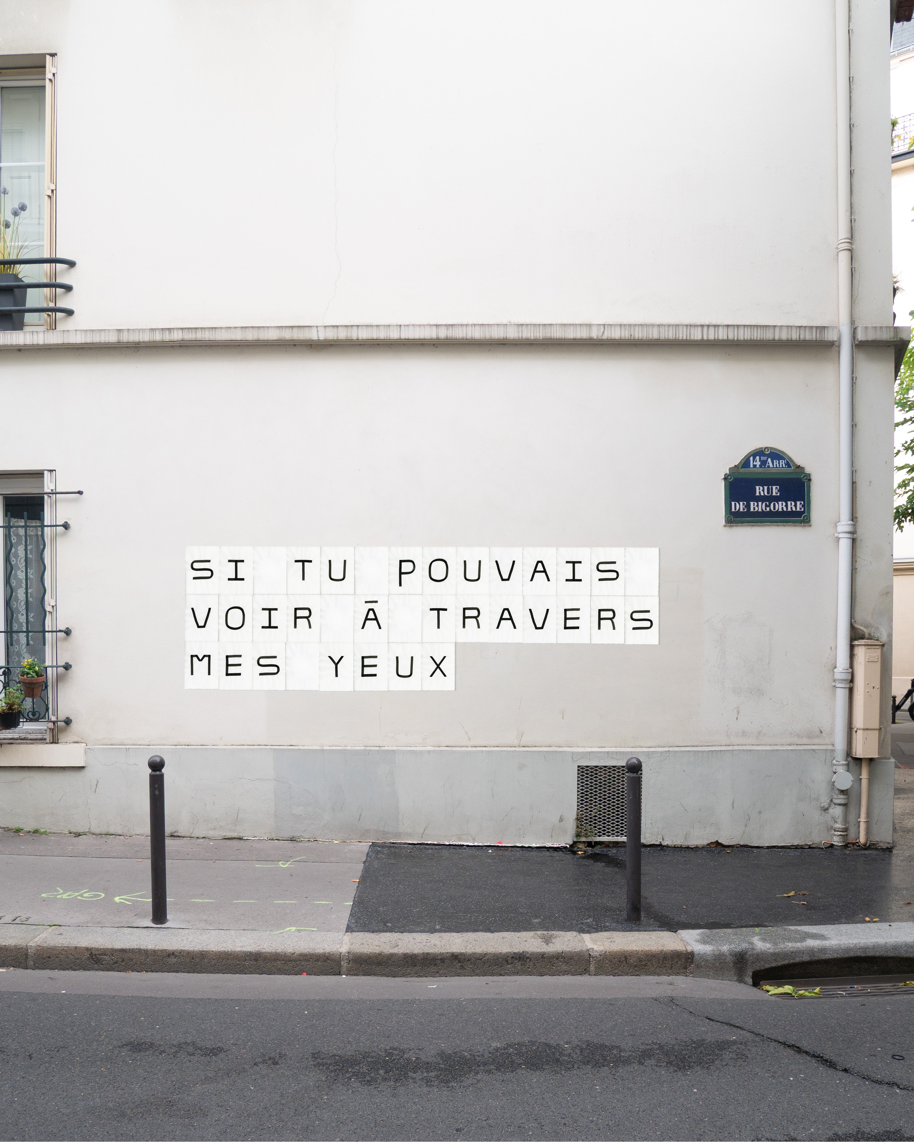 qui en assure une lecture fluide et immédiate. J’interviens dans la rue à travers des messages poétiques,
